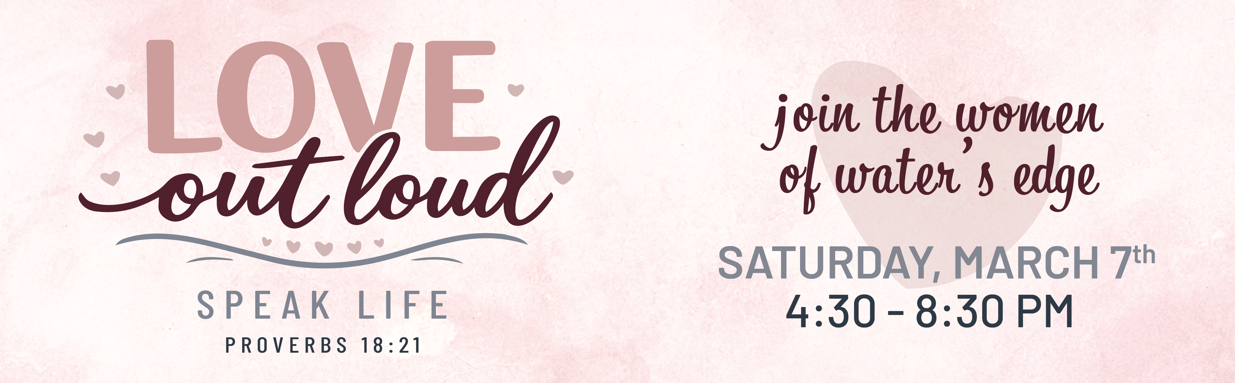 Join us for a fun evening of dinner, worship and encouragement, dessert, and bingo at Love Out Loud: Speak Life. Centered on Proverbs 18:21, this gathering invites women to reflect on the life-giving power of our words.